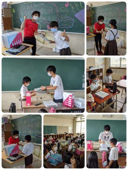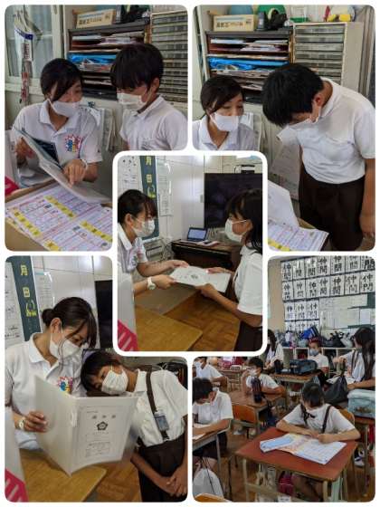 4時間目に、全学級で夏休みの課題と1学期の通知表が配付されました。