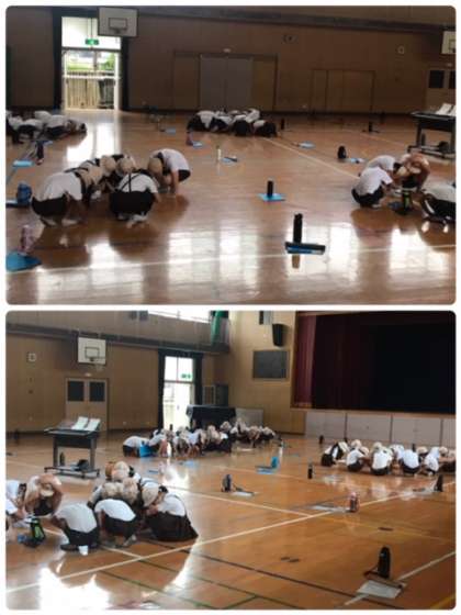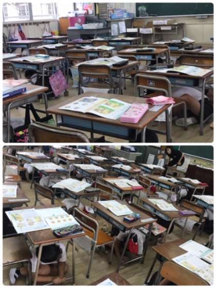 本校では、防災無線の放送にあわせて、避難訓練を行いました。