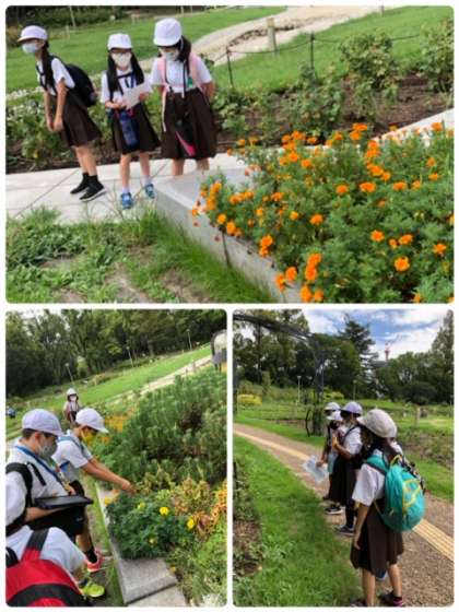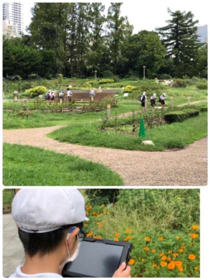 2組は、靱公園に到着し、グループによる観察学習がスタートしました。リーダーのもと、協力して活動できています。