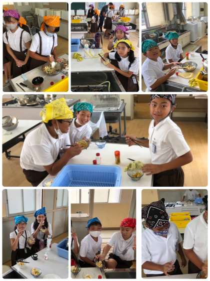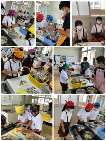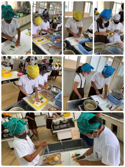 ?林間学習に向けて3組目のグループが調理実習に臨みました。