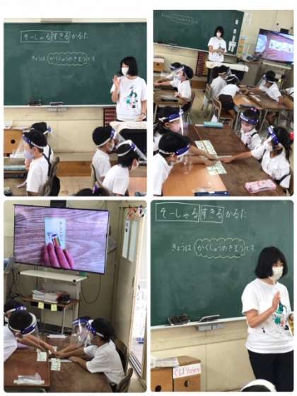 ?1年1組がソーシャルスキルかるたに取り組んでいます。かるたを通じて、ソーシャルスキルが身につけばと思います。今日は、学習のきまりについて学びました。