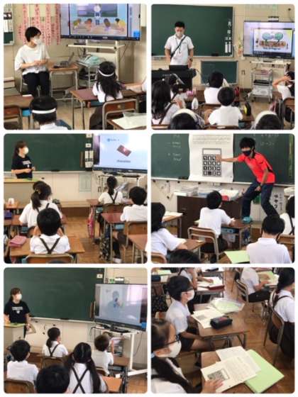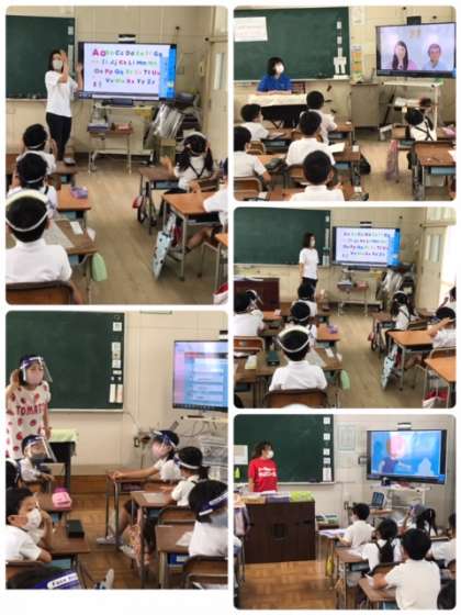 低、中学年も、たくさんの英語のシャワーを浴びて、意味も考え、コミュニケーションにつなげようとしています。