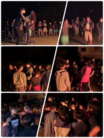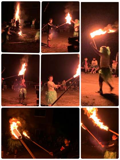 キャンプファイヤーでは、5年生も先生方もスペシャルゲストも楽しく活動しました。