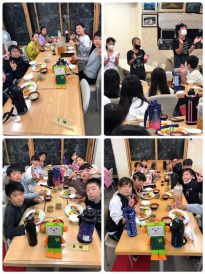 しっかり活動した1日の夕食、待ち遠しかったようです。感謝して美味しくいただいています。