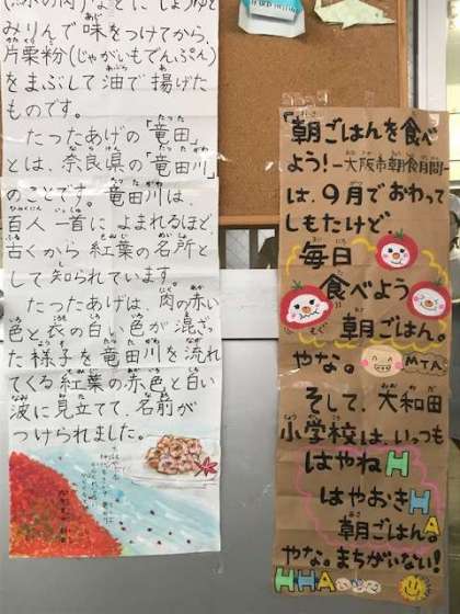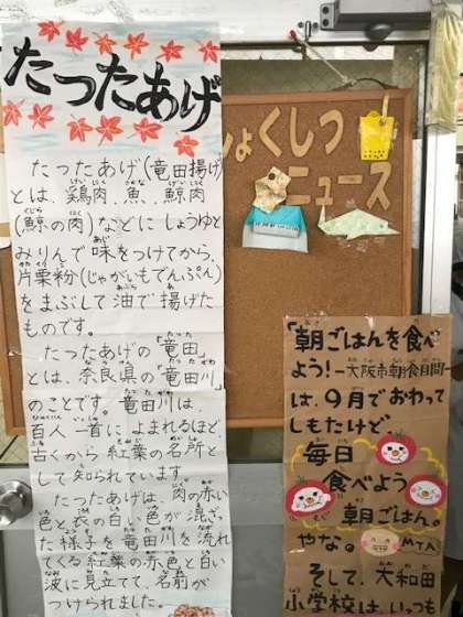 なぜ竜田揚げ、という名前になったのか、ぜひ岡山先生の掲示物を読んでください。名前の由来がよくわかります。