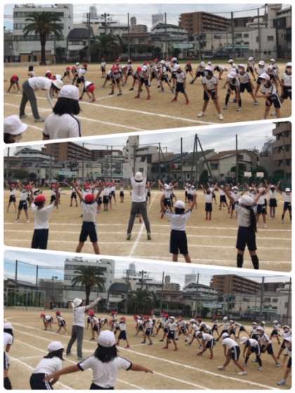 ラジオ体操の動きを一つ一つ確認していました。