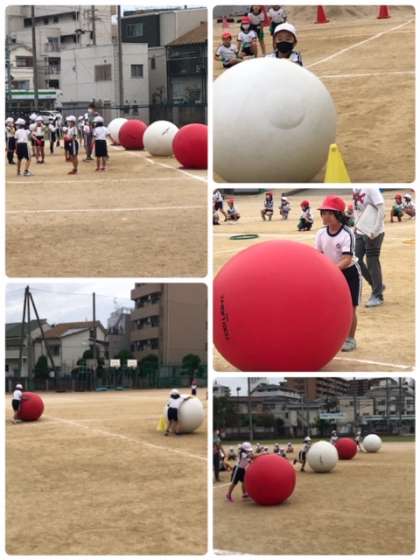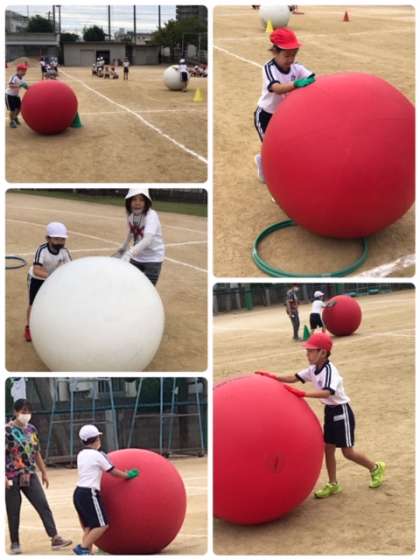 その後、大玉転がしの競技をルールをよく聴いて試してみていました。本番をお楽しみに。