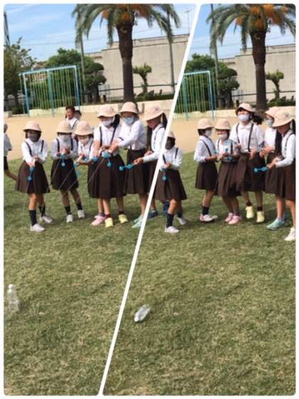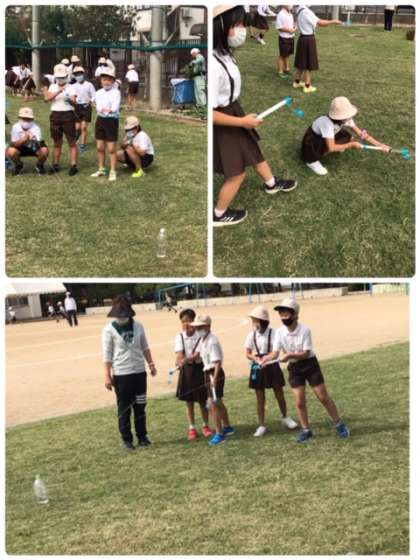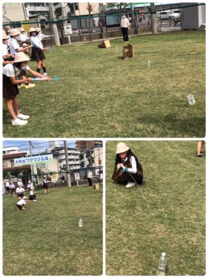 水の力の実験として、大和田ワクワク広場で、水鉄砲を使い、的を倒す実験をしました。