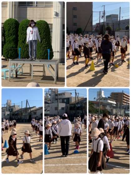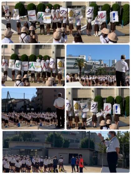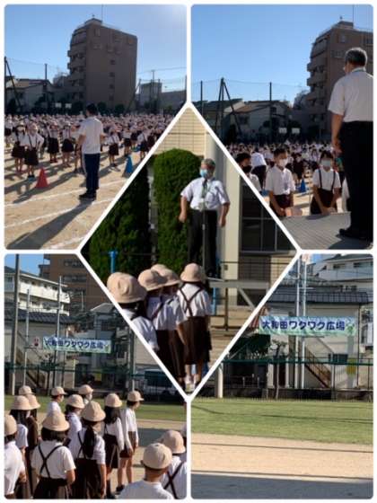 台風が過ぎた後の晴天のもと、児童朝会で今週が始まりました。
