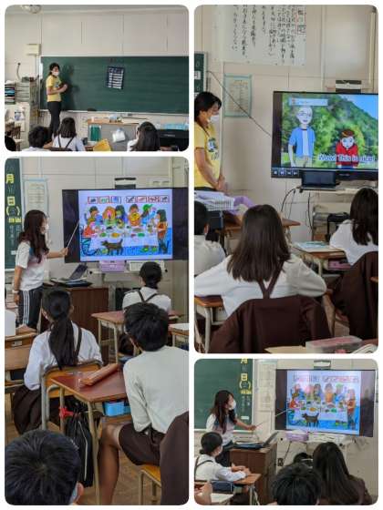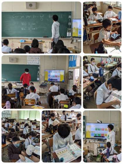 ABCジングルやチャンツなどの歌を聴いたり歌ったり、友達とインタビューをし合ったり、リスニングとライティングをしたりするなど、さまざまな工夫を凝らし、集中して楽しく英語活動に取り組みました。