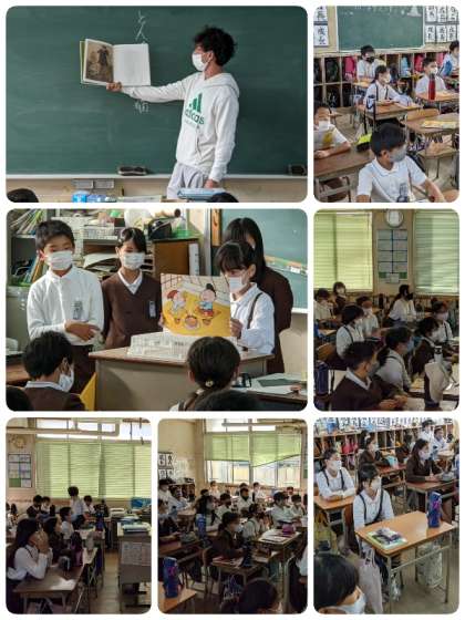 一人で本を手に取り読書したり、担任の先生やクラスの図書係さんが読み聞かせしたり、各クラスで読書タイムにもさまざまな工夫が見られます。