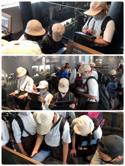 館内では、見学した内容をタブレットに記録して、後々の学習に生かします。