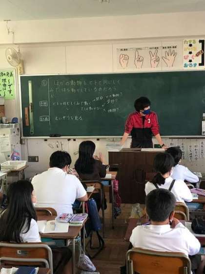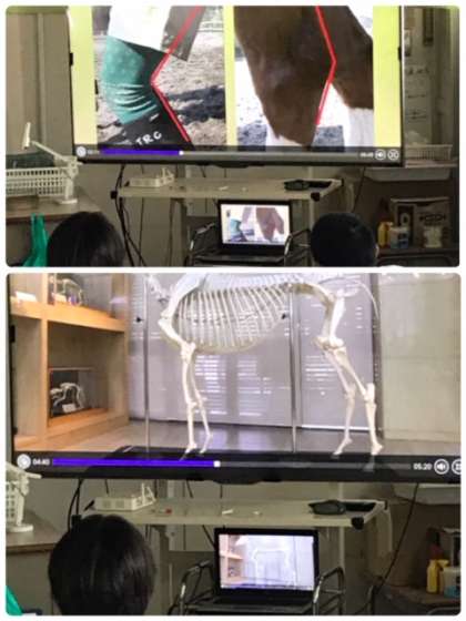人と動物の体のつくりについて学習しています。詳しく調べるために、PCやタブレット、大型モニターを活用して、教科書だけではわかりにくい点もわかりやすく学んでいます。