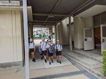 今から教室で遠足の振返りをして、6時間目終了の15時35分をめどに下校します。