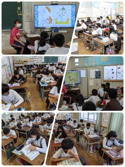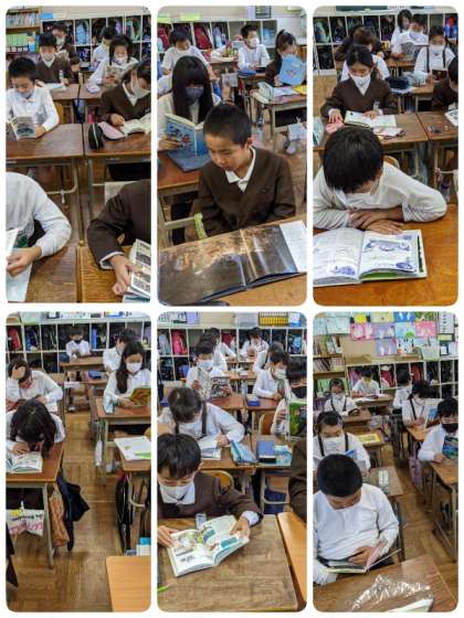 一人で本を手に取り読書したり、担任の先生やクラスの図書係さんが読み聞かせしたり、各クラスで読書タイムにもさまざまな工夫が見られます。