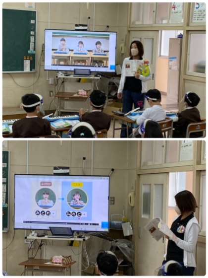 1年2組ではデジタル教科書を活用して音楽づくりの学習をしていました。