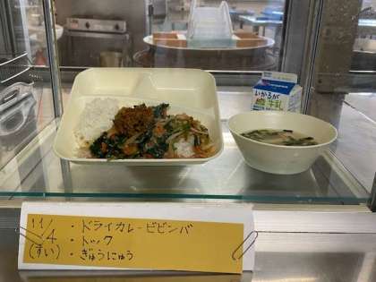ドライカレービビンバ、トック、牛乳
