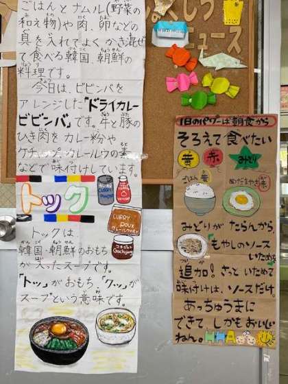 です。朝からとてもいい香りがしていて、子どもたちもお腹ぺこぺこ。献立を知り、歓声が上がりました。
