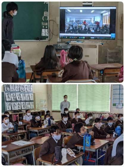 5年生は、図書委員会の児童が紙芝居の読み聞かせ役で各学級をまわっているため、それぞれのクラスでは、以前に先生方が行なったビブリオバトルの動画を視聴しました。