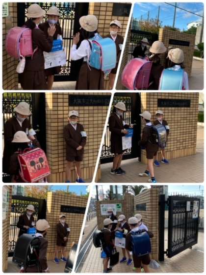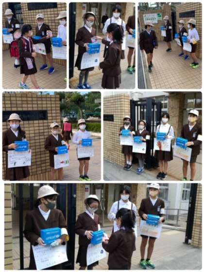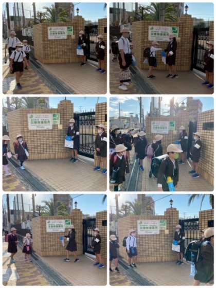 あいさつ運動の2日目、今日からユニセフ募金も始まりました。