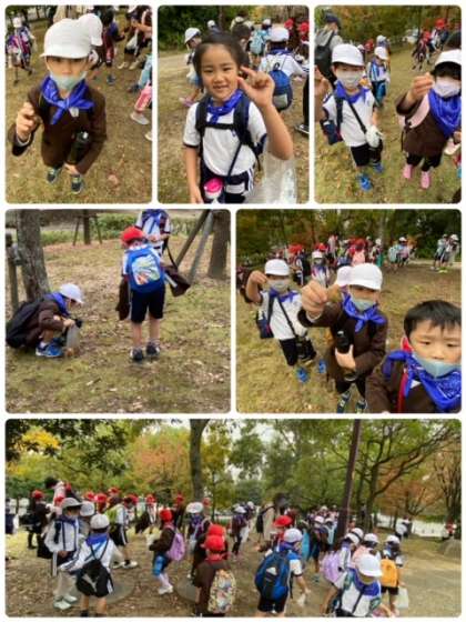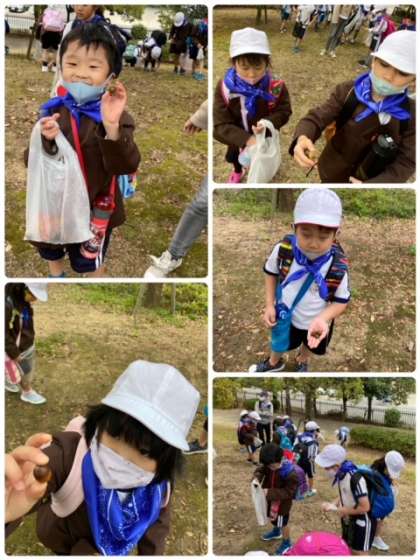 みんなでどんぐり探しています。