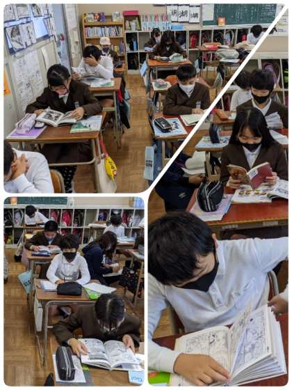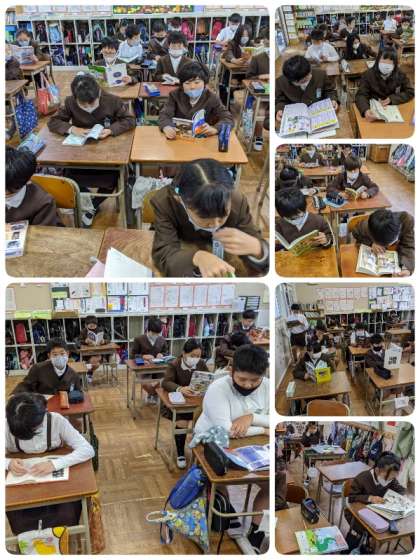 4年生と6年1組は、1人1冊本を手にとり黙々と読書しました。