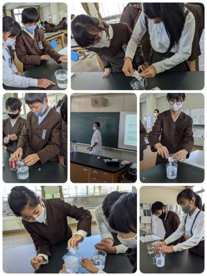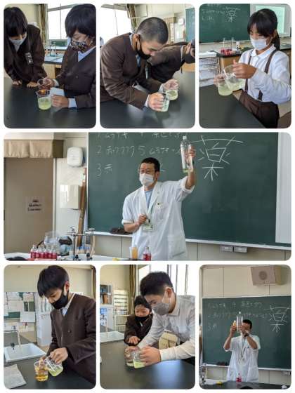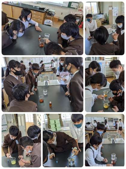 学校薬剤師の先生から、実験のやり方の説明を受け、児童は班で話し合い協力して主体的に実験に取り組みました。
