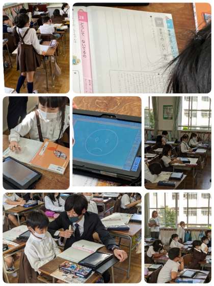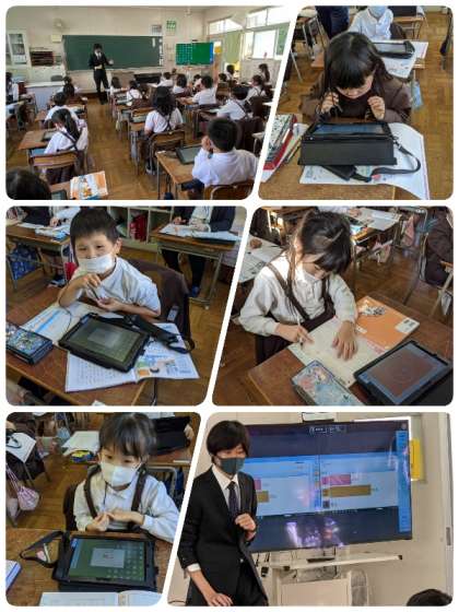 児童はタブレットの投票機能を使って、授業のはじめと終わりに投票を行い、気持ちの変化を見比べたり、教材に出てくる主人公の場面ごとの表情をタブレットの画面から選択して考えたりするなど、タブレットをうまく使いながら自分の考えを表しました。