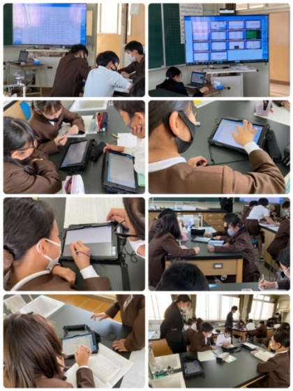 6年生は理科室で、水溶液の性質を踏まえて分類することを、フローチャートで考え、実験をして、確かめる、という学習でした。