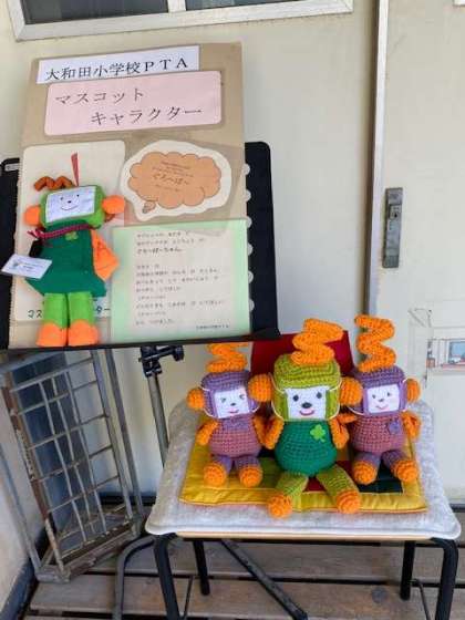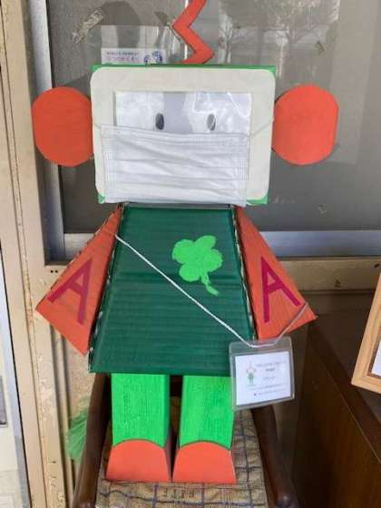 校長室前のぐろーばーたちも、マスクやシールドをきちんとつけています。