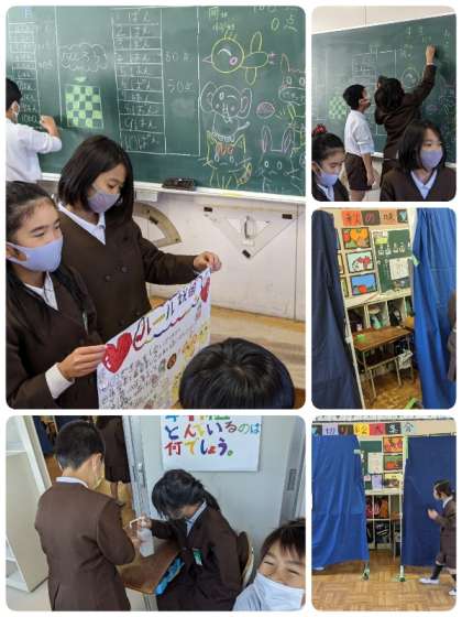縦割り班でお店をまわり楽しく遊んだり、クラスのお店番をしたり、みんなが笑顔で活動する様子が見られました。
