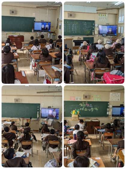 最後に各クラスのモニターと閉会式会場とをTeamsでつなぎ、閉会式を行いました。
