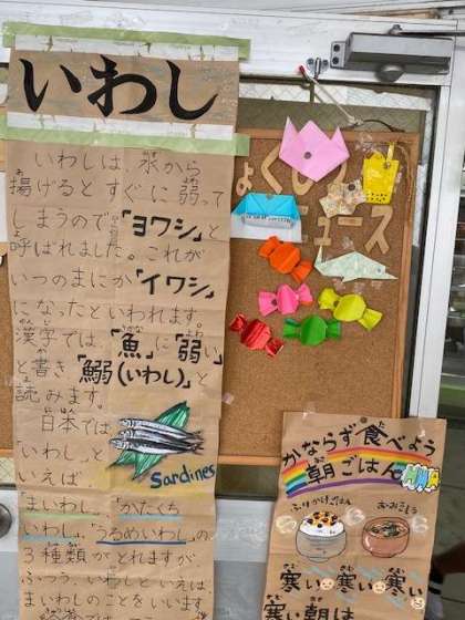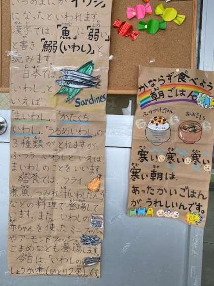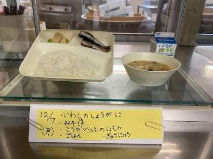 です。イワシを生姜煮にして、食べやすい味付けにしています。日本の定番の食卓にあがる魚です。みんなで美味しくいただきましょう!