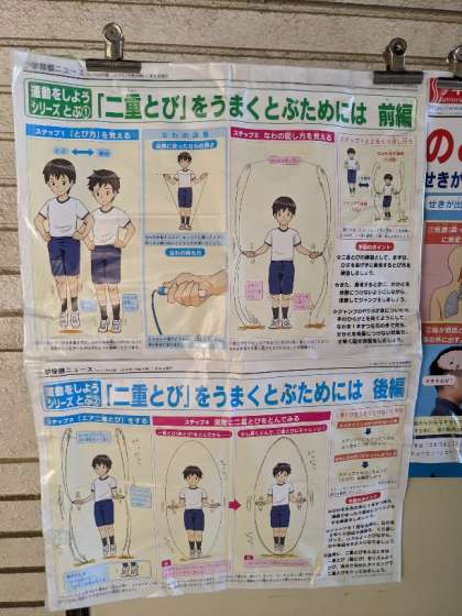 二重跳びをうまく跳ぶためには、という二重跳びのコツポスターを保健室横に掲示しています。