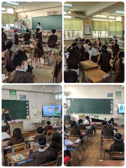 物語を視聴したり、アルファベットの書き取りをしたり、ビンゴゲームをしたり、英文のリスニングとライティングをしたりするなど、さまざまな工夫を凝らし、集中して英語活動に取り組みました。