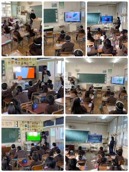 大型モニターなどを活用し、ネイティブの発音に慣れ親しむよう、工夫しています。
