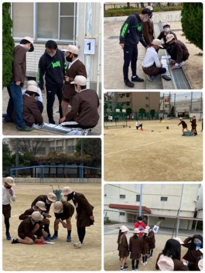 1時間目、5年生が運動場で、お楽しみオリエンテーリングをしていました。問題出題役も自分たちでしています。学年みんなが楽しめるように、工夫しながら楽しんでいました。