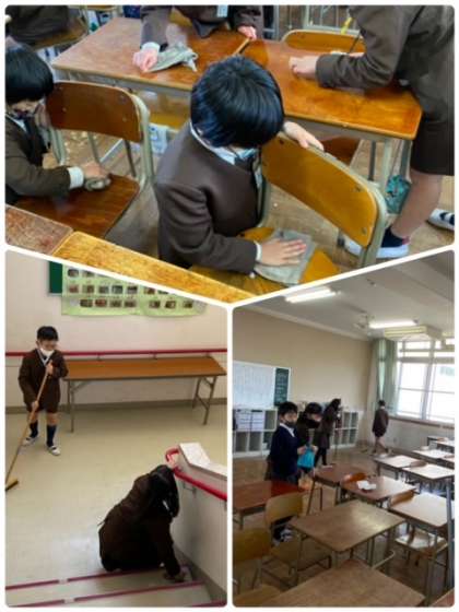 午後からの終業式を控えて、学習活動として大掃除に取り組む学級がありました。荷物の整理整頓とともに、念入りにきれいにしていました。