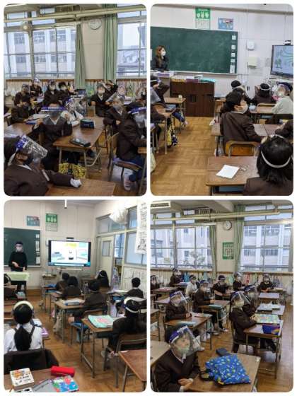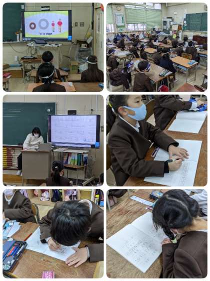 物語を視聴したり、アルファベットの書き取りをしたり、ABCジングルを聴いて体を動かしたり、英語の歌を歌ったり、あいさつの会話を練習したり、英文のリスニングとライティングをしたりするなど、さまざまな工夫を凝らし、楽しく集中して英語活動に取り組みました。