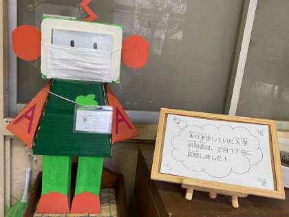 本日予定していた入学説明会は、2月17日に延期しています。お間違えないよう、よろしくお願いします。