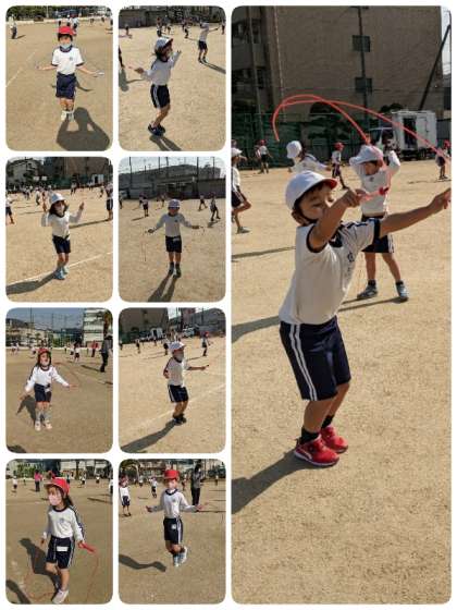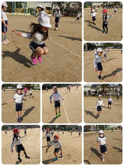 1年生は、かけ足跳びやあや跳びなどが上手になってきました。