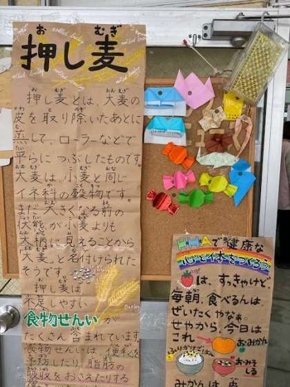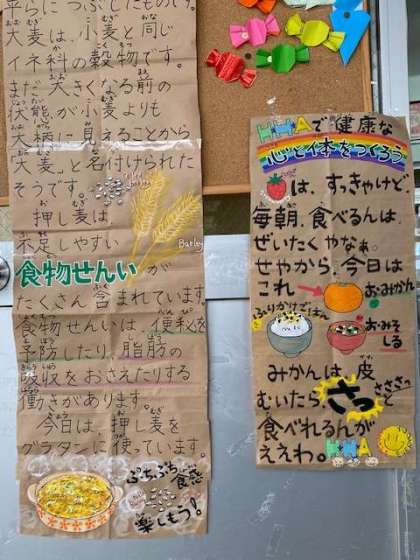 押し麦のグラタン、スープ、伊予柑、黒糖バン、牛乳