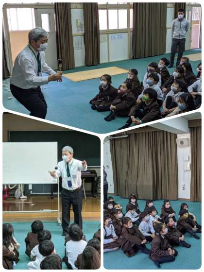 1、2時間目に、1年生の生活科「むかしあそびをしよう」の学習で校長先生が特別授業を行いました。