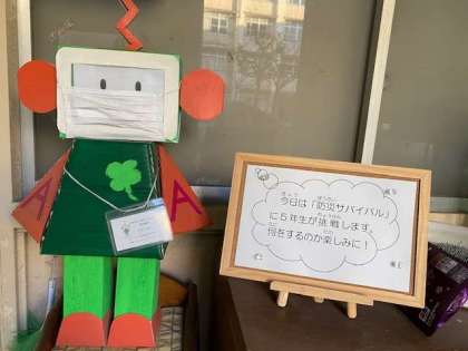 昨日に引き続き、今日は5年生が防災サバイバルにチャレンジします。何をするのか楽しみに、頑張って!