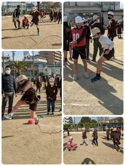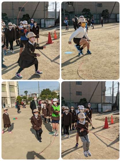 大波小波や8の字跳びをして班で楽しく交流しました。