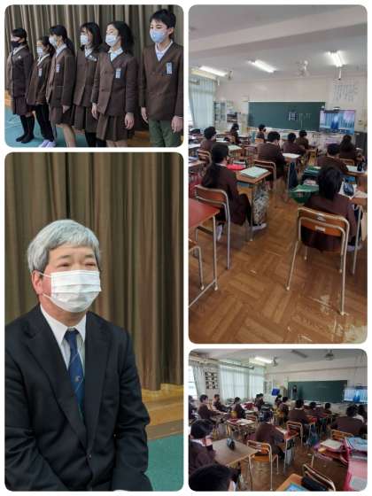 最初に校長先生から、「今週の木曜日、3月11日は、今からちょうど10年前に東日本大震災が起きて、地震と津波で多くの方が亡くなった日です。国をあげて亡くなった方々へのご冥福をお祈りして、木曜日には国旗を半期にします。また地震が起きた午後2時46分には放送を入れますので、全員で黙祷をささげましょう。大阪も東南海トラフ巨大地震と言う、いつ大きな地震が起きて津波が襲ってくるかわかりません。災害はいつ起こるかわかりません。日頃から家族としっかり話し合い、災害への備えをしておきましょう。」というお話をしていただきました。
