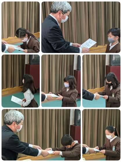次に、環境委員会のみなさんから、2月の掃除の表彰と掃除で気をつけることについてお話がありました。