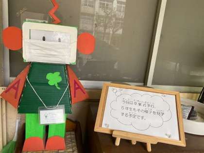 在校生代表として5年生の代表しか卒業式には参加しないので、今日の予行は5年生全員で参加、見学することにします。
