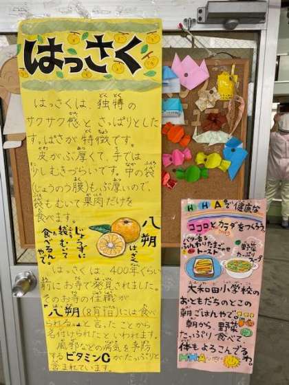 です。ビタミンたっぷりのはっさくが今日のデザートです。