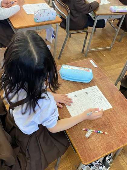 九九のマス計算プリント学習を最後まで頑張っています。算数の基礎基本となる力の定着をはかっています。